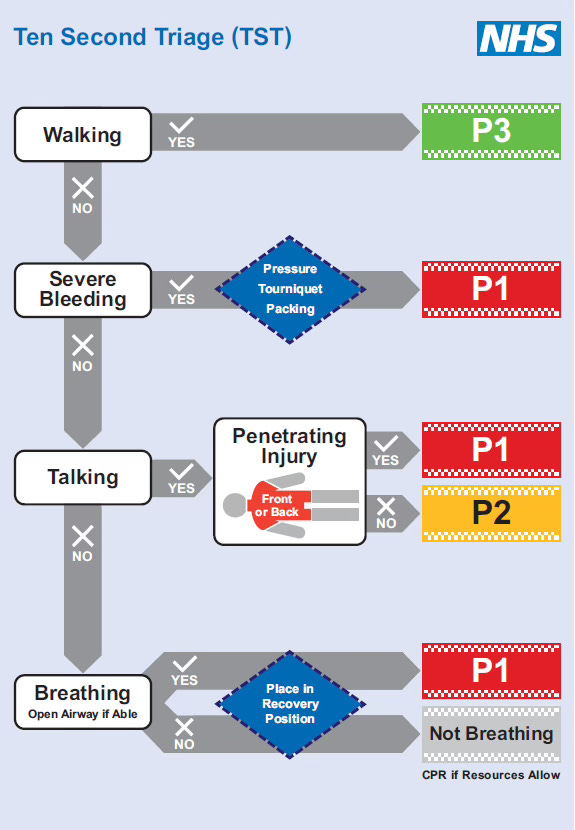 The ten-second triage mindset therefore functions as a decision-making model: identify the existential risk immediately and stabilise it before progressing.